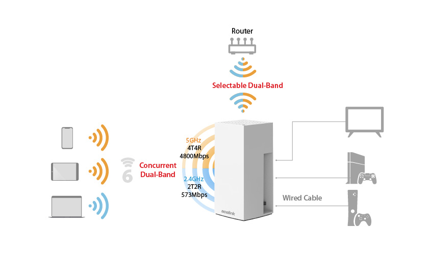 This router upgrades your network to Wi-Fi 6, which operates in both 5GHz and 2.4GHz band. Wi-Fi 6, the 802.11ax, is the mostly compliant Wi-Fi standard for current home wireless networking. With combined up to 4800Mbps 5GHz data rate and 573Mbps 2.4GHz data rate, the device provides the best speeds and coverage. You can run multiple bandwidth-intensive applications in a large home or office. The router is also backward compatible with 802.11 a/b/g/n/ac to ensure compatibility with legacy Wi-Fi devices.